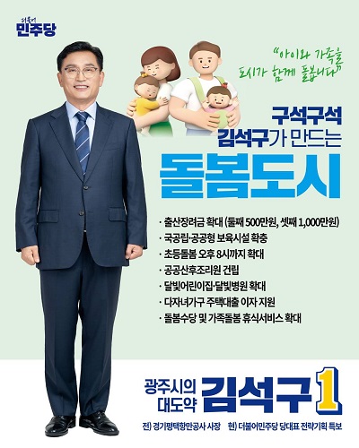 김석구 광주시장 예비후보가 3일 돌봄도시, 의료복지도시, 경제자족도시, 힐링도시, 교통혁신도시, 행정혁신도시, 교육도시, 청년도시, 안전도시 등 광주 미래 비전을 담은 9가지 도시 테마공약을 순차적으로 발표한다고 밝혔다.