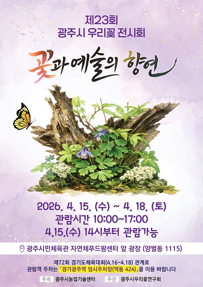 아울러, 이번 전시는 ‘경기도체육대회 2026 광주’가 열리는 시민체육관 일원에서 동시에 진행돼 방문객들이 꽃 전시와 체육행사를 함께 즐길 수 있을 것으로 기대된다.